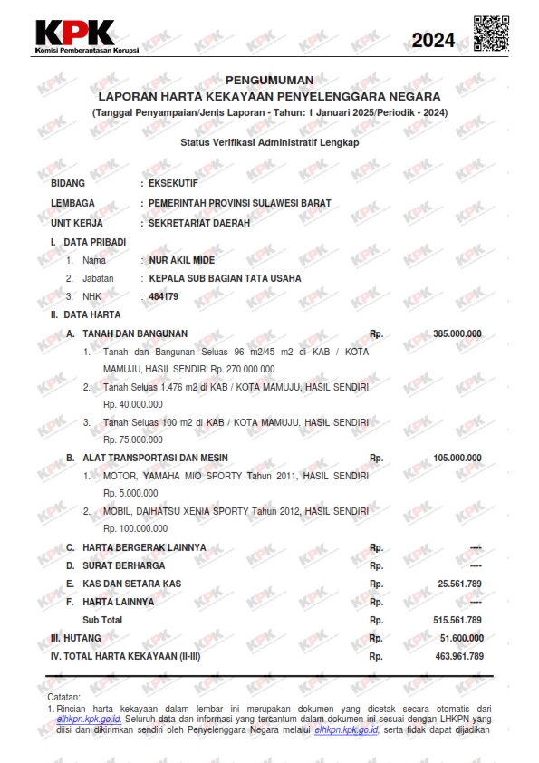- Provinsi Sulawesi Barat Meraih Predikat ISTIMEWA Penilaian Indeks Reformasi Hukum (IRH) Tahun 2024